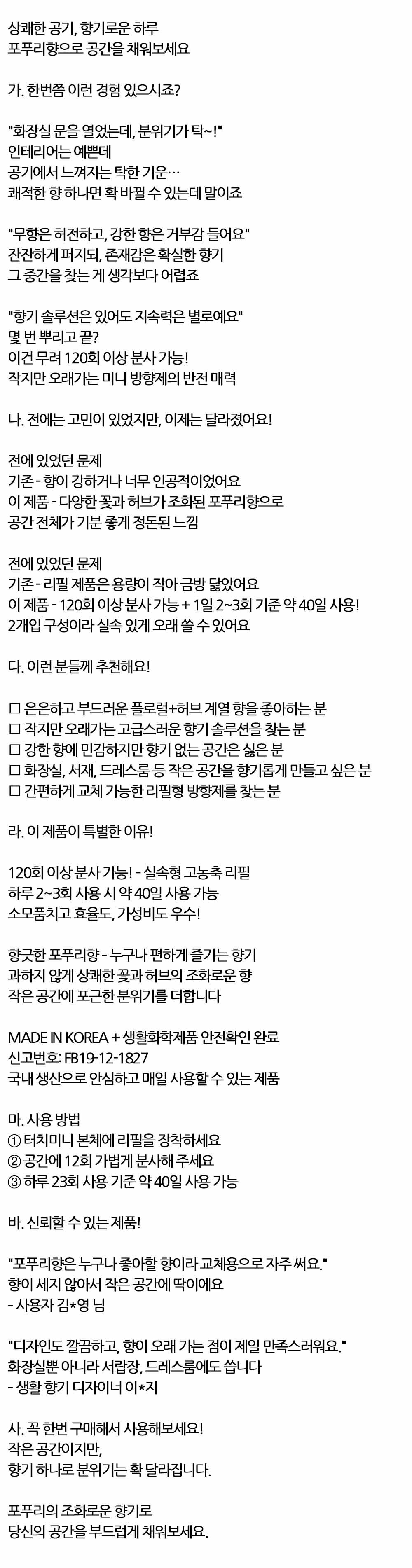 포근하게 채우는 포푸리향 화장실 방향제 리필 2입