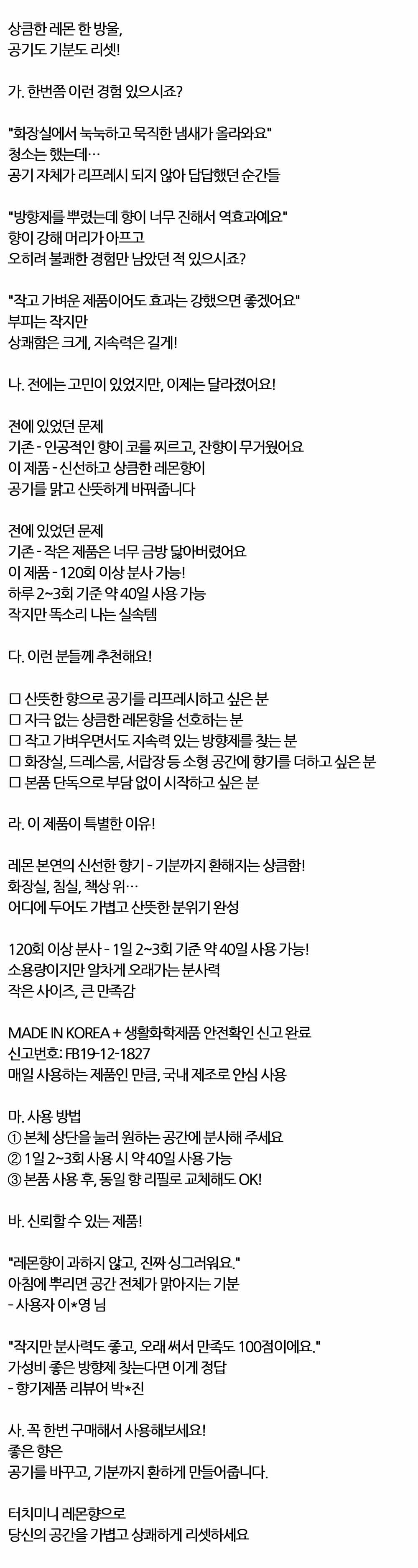 공기도 기분도 리셋 상큼한 레몬향 화장실 방향제