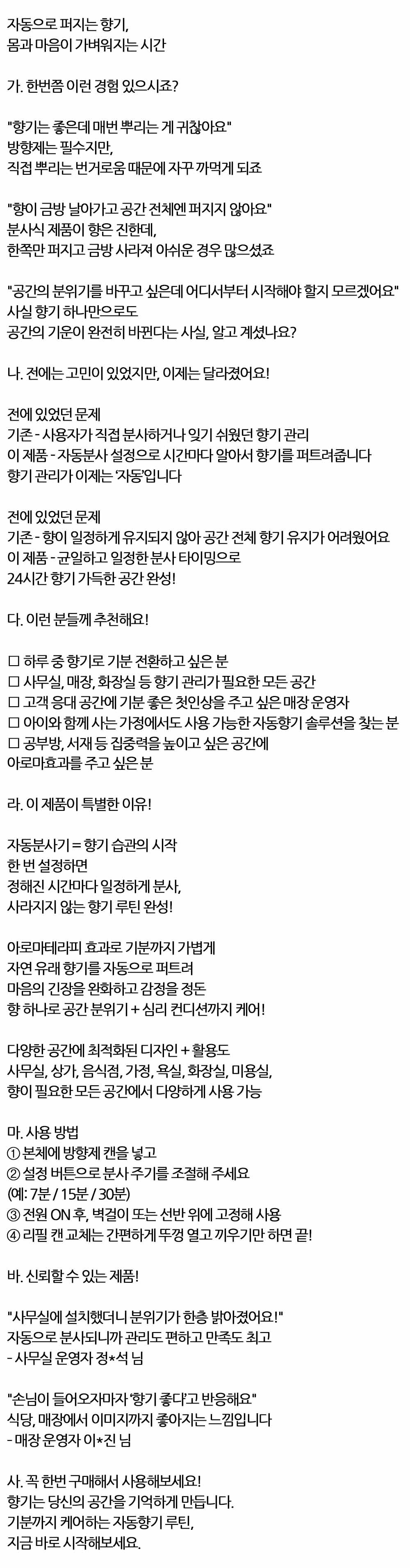 향기는 공간을 기억하게 만듭니다 방향제 자동분사기