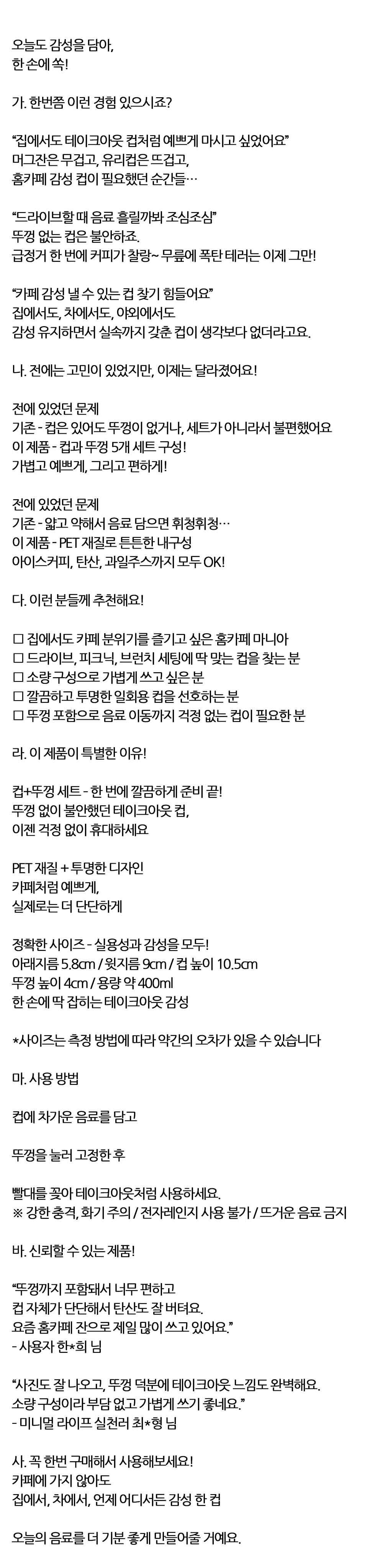 카페 감성 낼 수 있는 일회용컵 뚜껑세트 400ml 5P