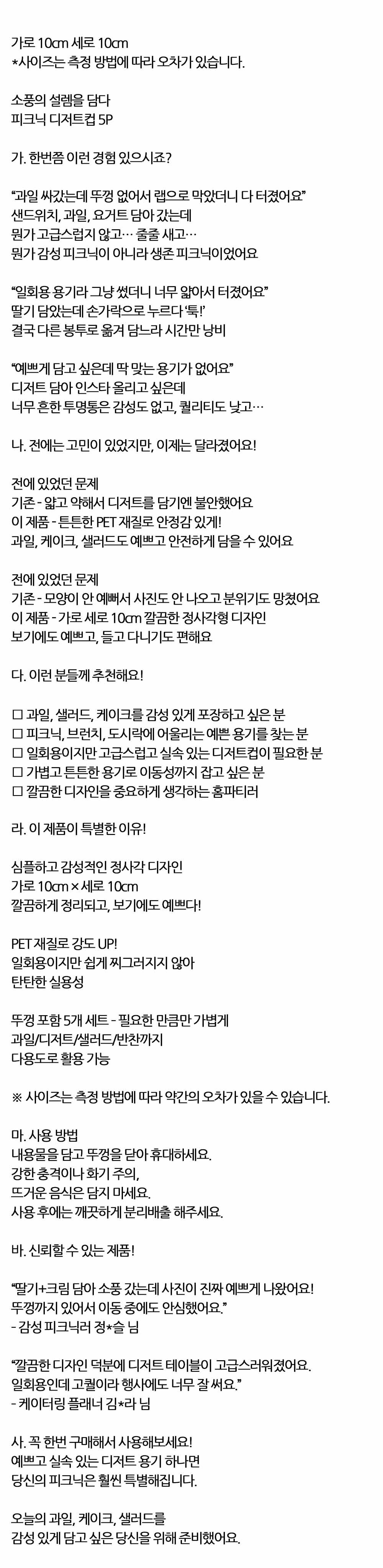 야외소풍 설렘을 담다 일회용 디저트컵 뚜껑세트 5P
