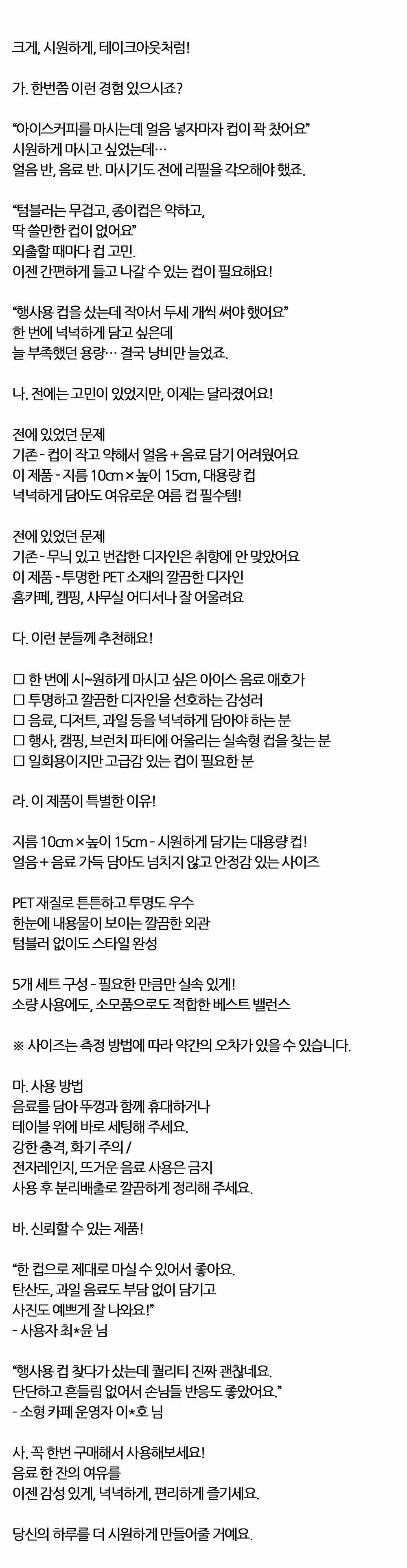 넉넉하게 담아도 여유로운 여름 일회용컵 뚜껑세트 5P