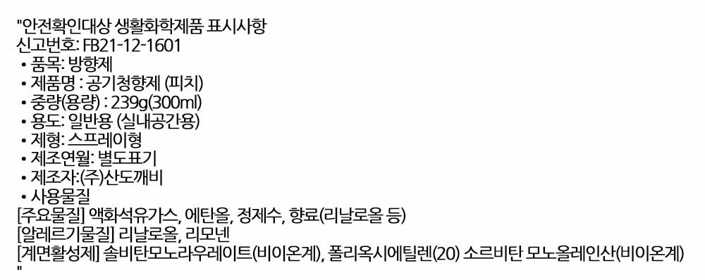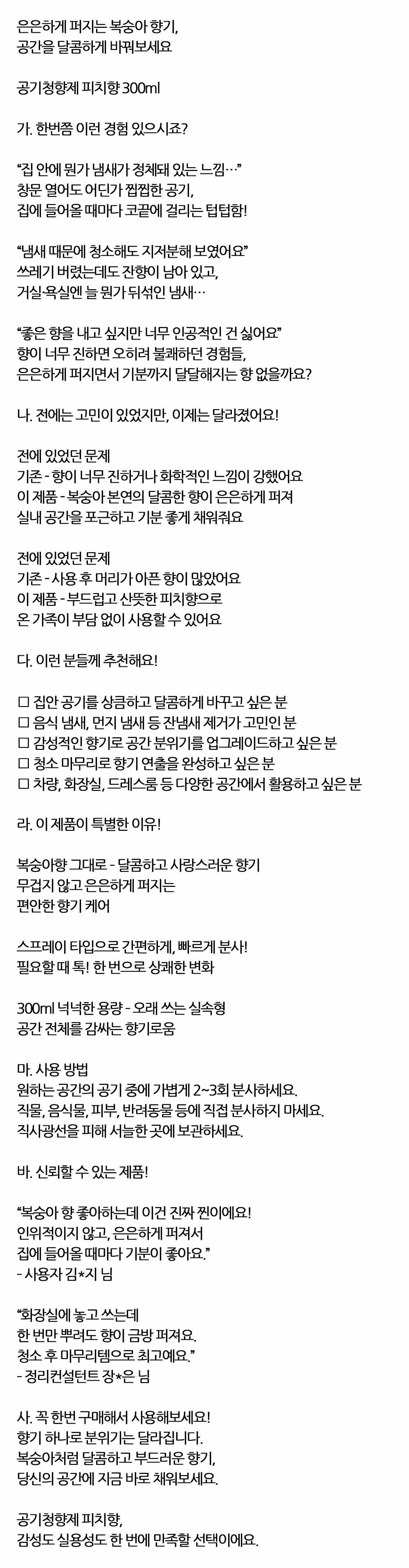은은하게 퍼지는 달콤한 복숭아향 방향스프레이 300ml