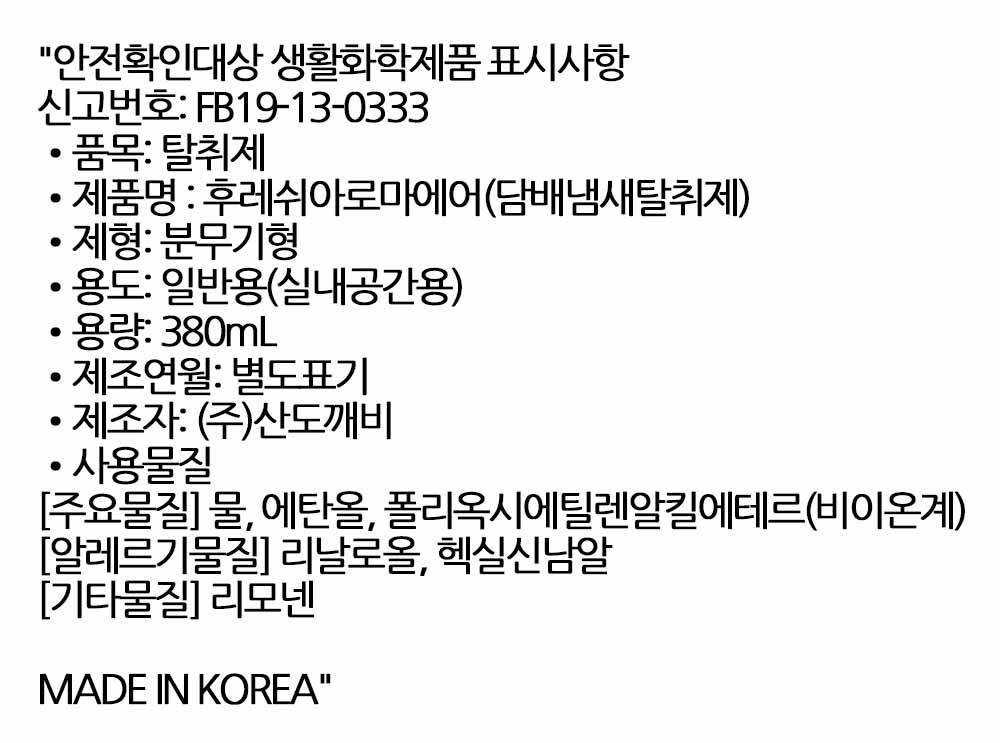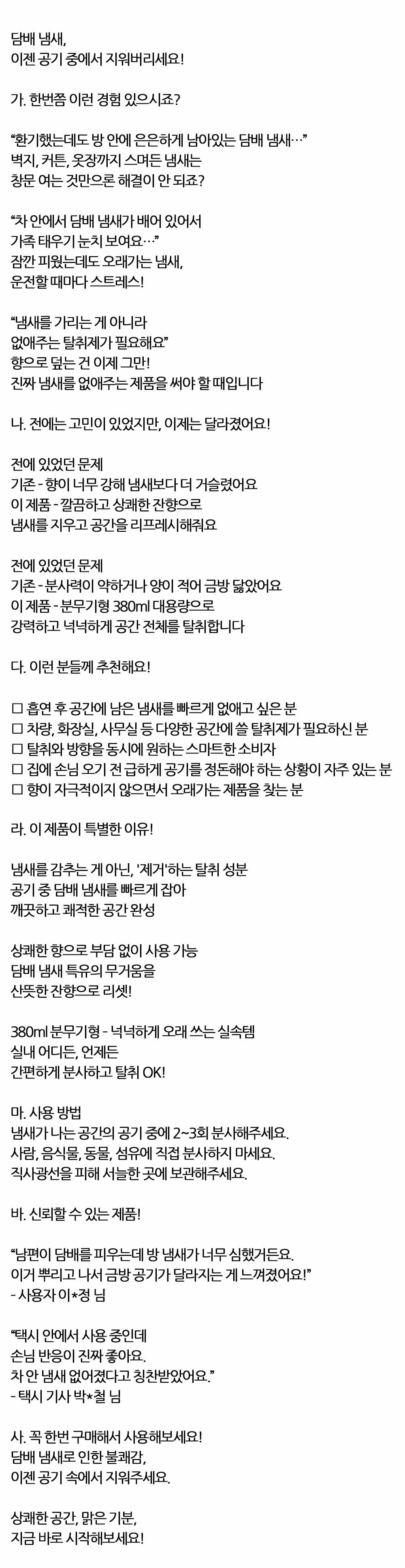 담배냄새 불쾌감 이젠 지워주세요 방향스프레이 380ml