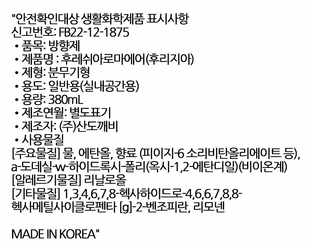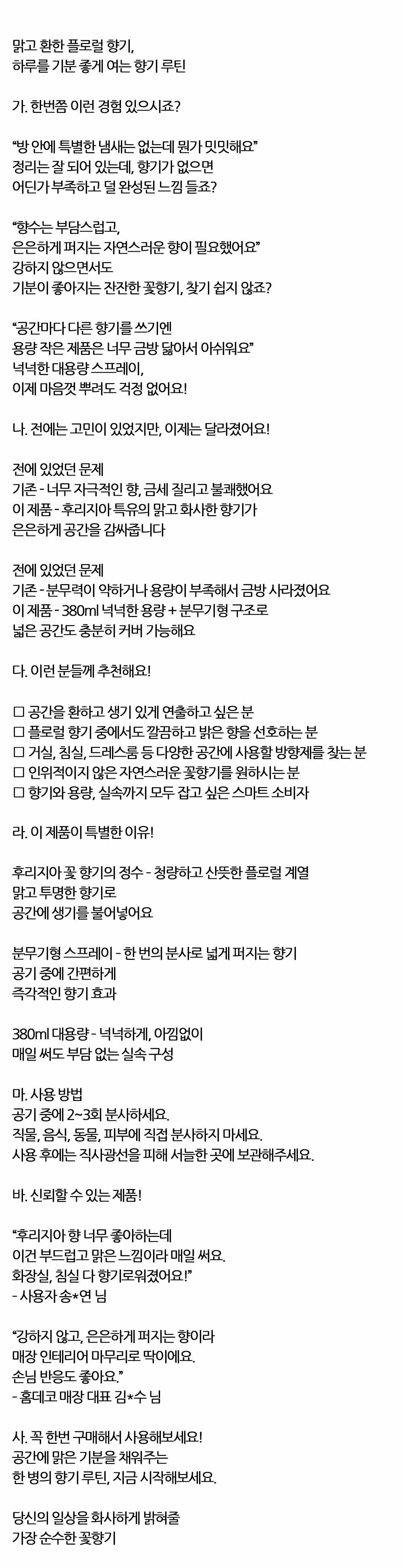 맑고 환한 플로럴 후리지아 향기 방향스프레이 380ml