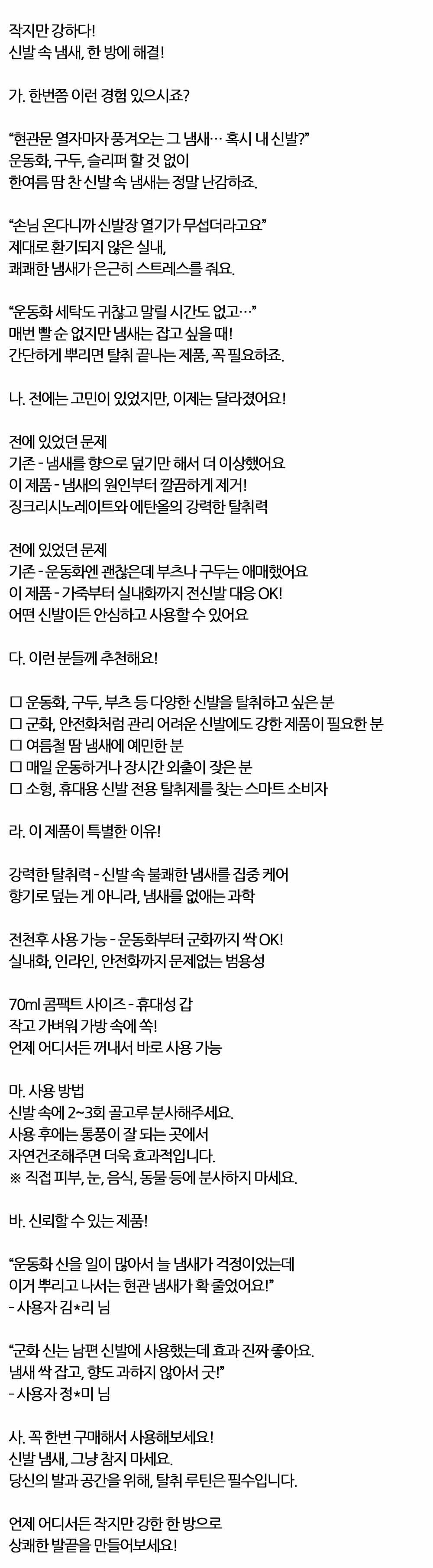 신발 속 냄새 그냥 참지 마세요 신발냄새 제거제 70ml