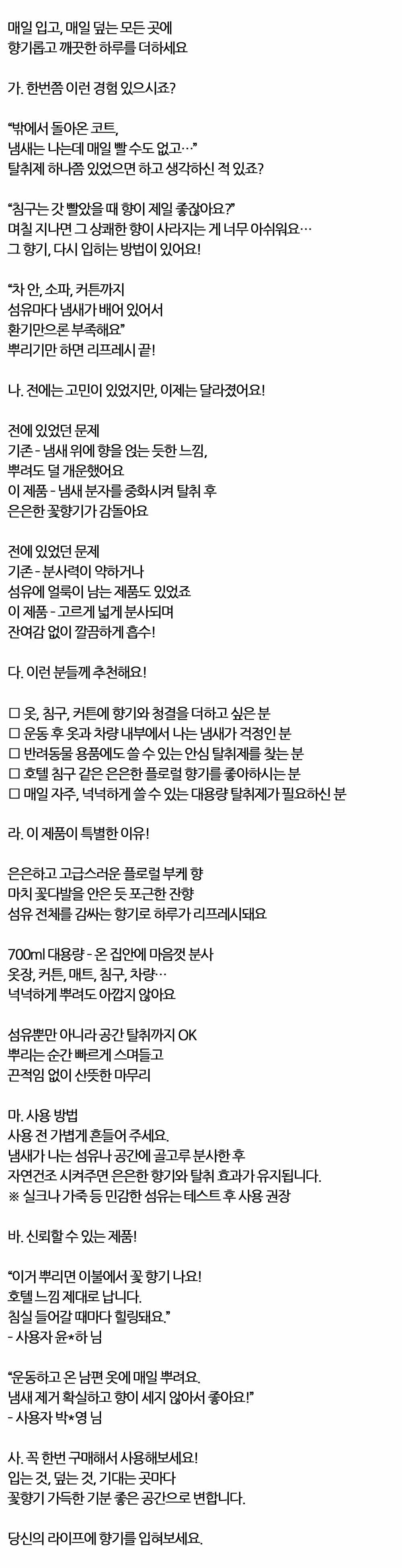 매일 입고 매일 덮는 모든곳 부케향 섬유탈취제 700ml