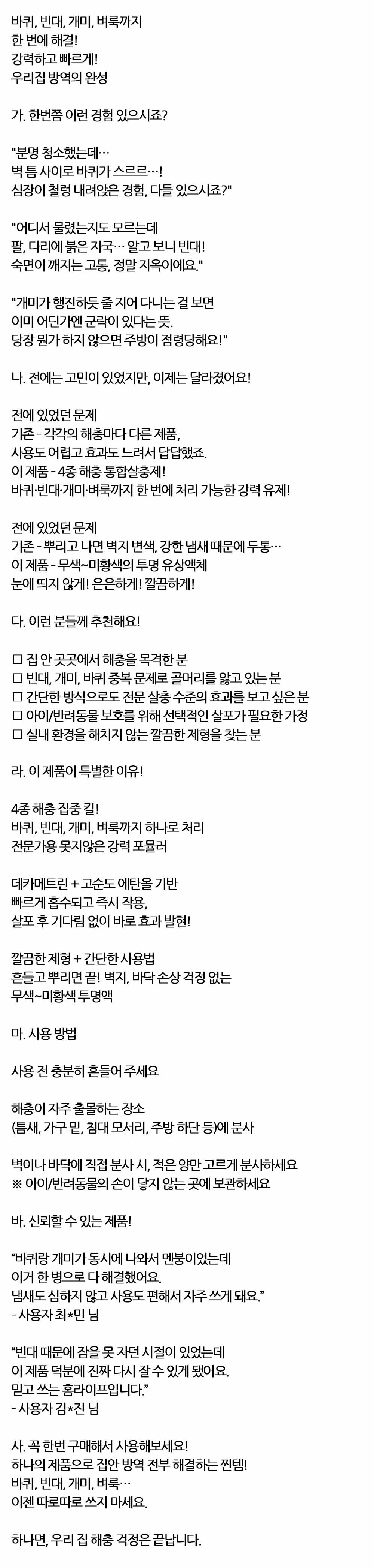 바퀴 빈대 개미 벼룩까지 한번에 해결 살충제 290ml