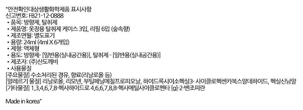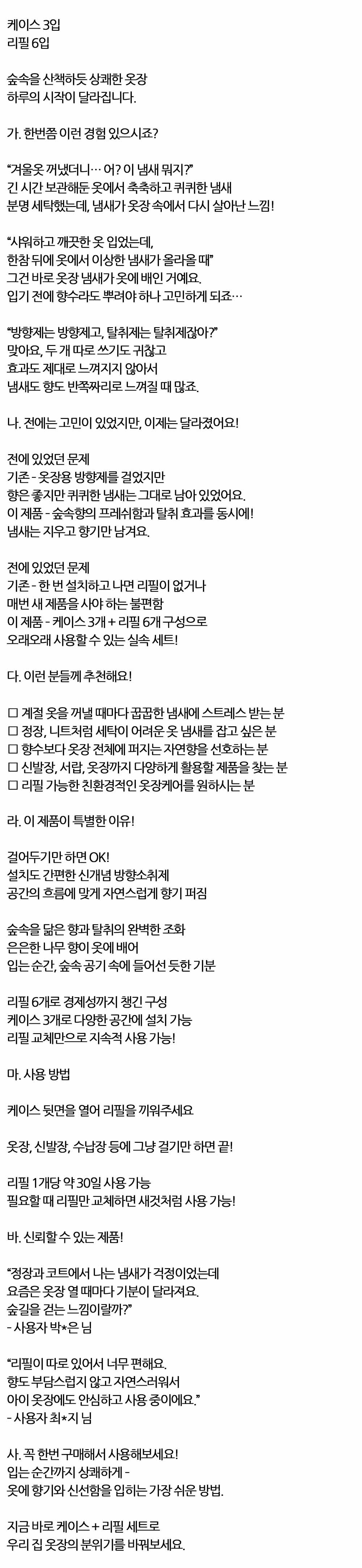 옷장속 옷에서 축축 퀴퀴한 냄새 숲속향 옷장 탈취제