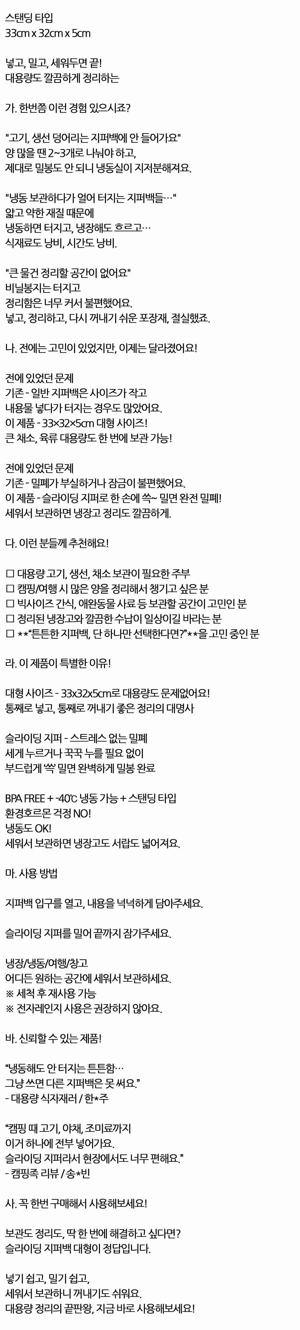 부드럽게 쓰윽 밀면 밀폐 밀봉 완료 대형 지퍼백 12매