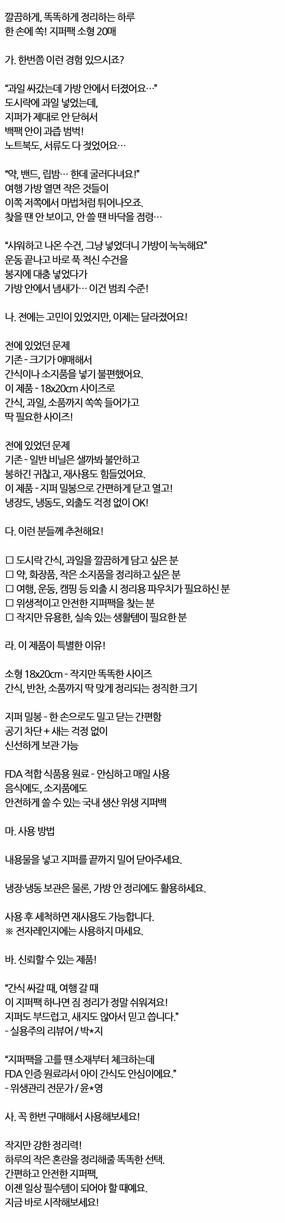과일 싸갔는데 가방안에서 터졌어요 소형 지퍼팩 20매
