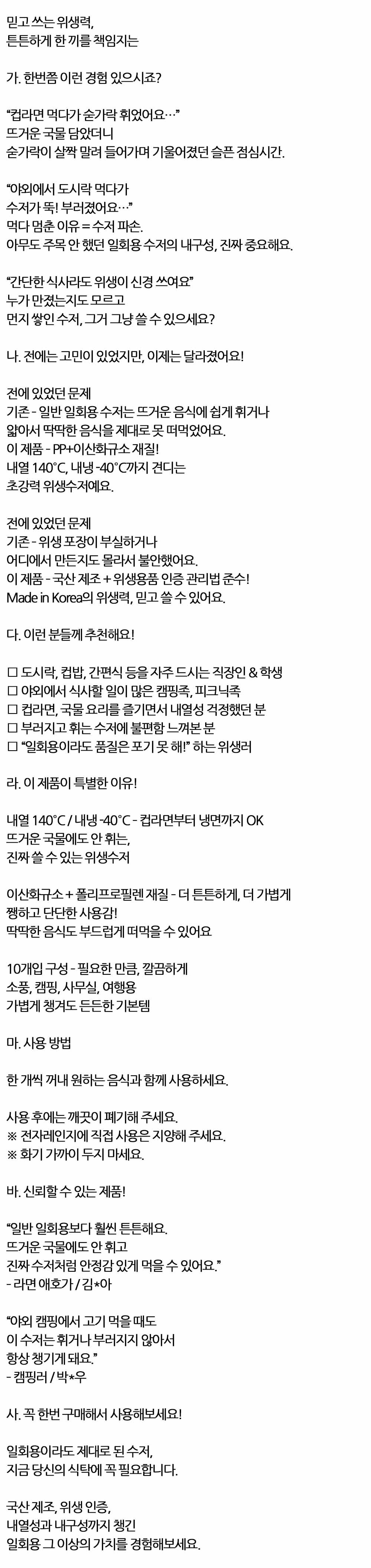 딱딱한 음식도 떠먹을수 있어요 일회용 위생수저 10입