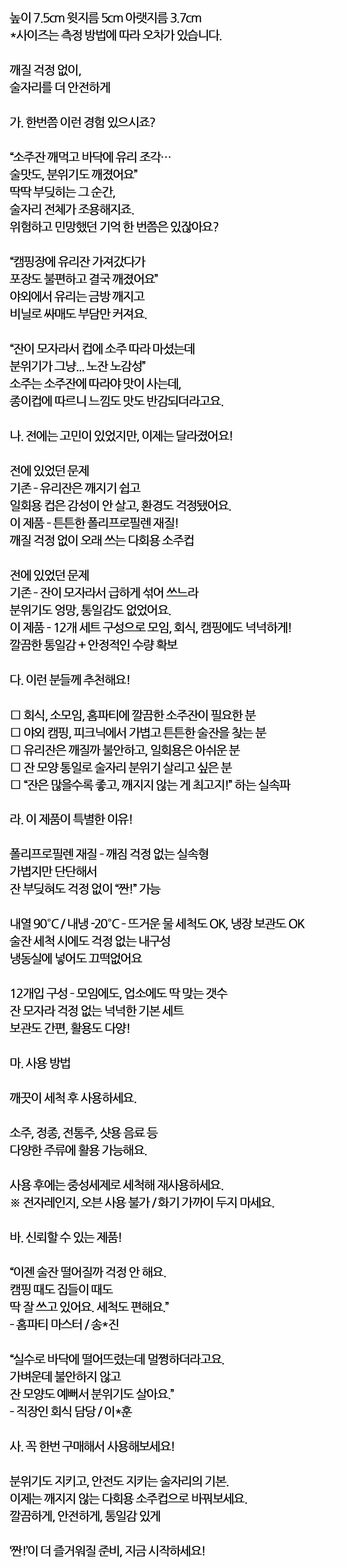 깨질 걱정없이 술자리를 안전하게 다회용 소주컵 12입