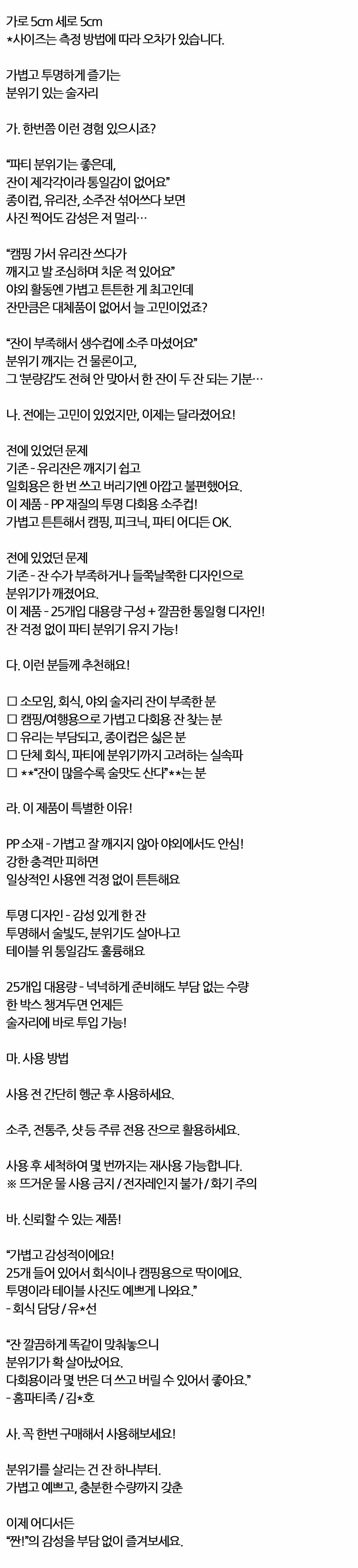 야외 술자리 캠핑용으로 딱이에요 다회용 소주컵 25입