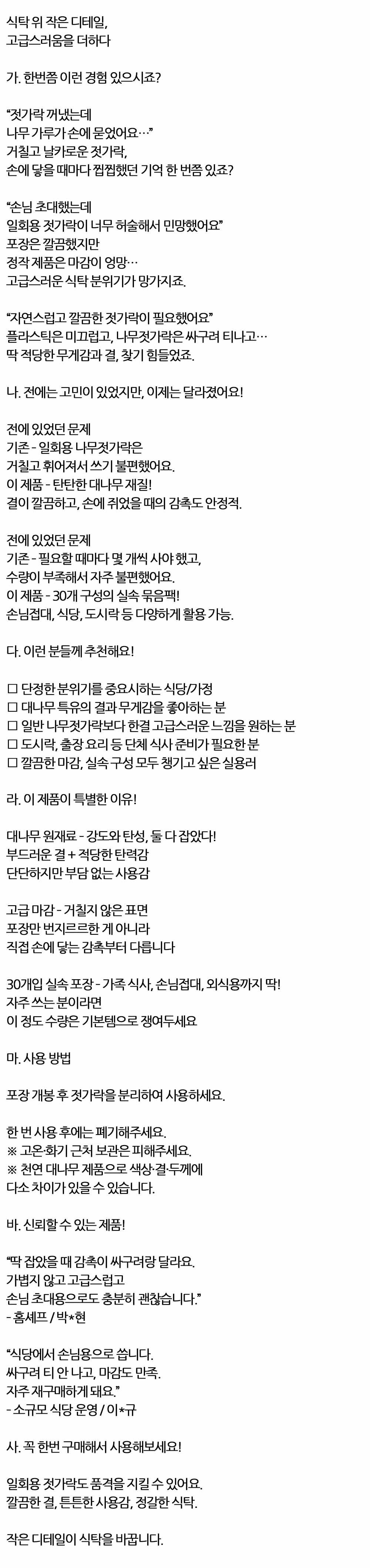 딱 잡았을 때 감촉이 달라요 대나무 젓가락 30입 10봉