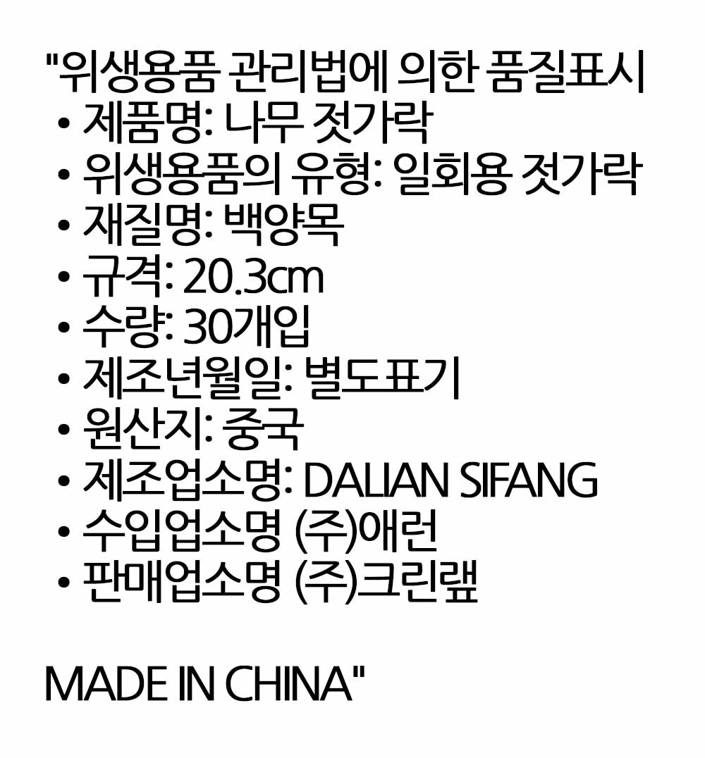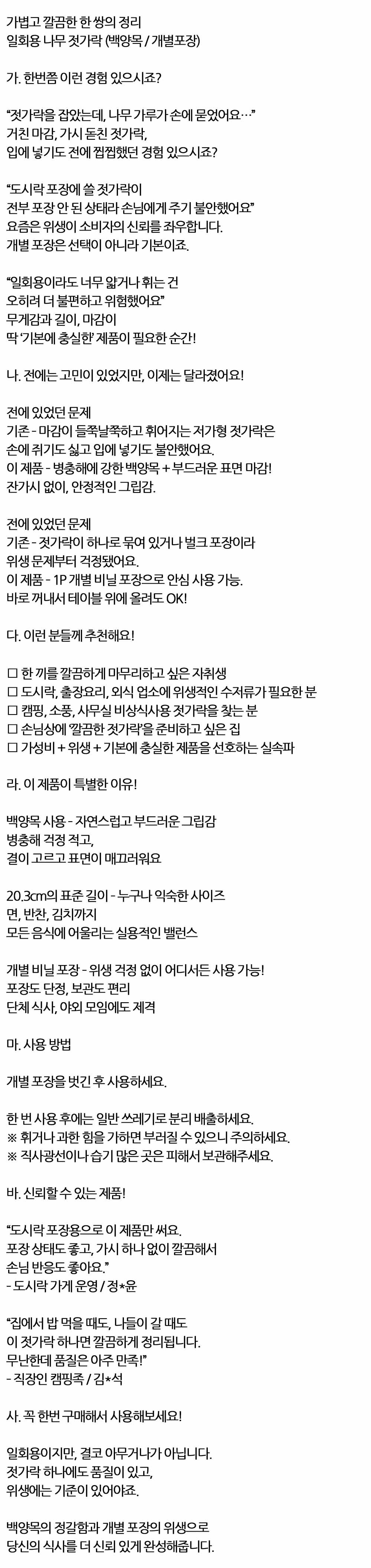 백양목의 정갈함과 개별 포장 일회용 나무젓가락 30입