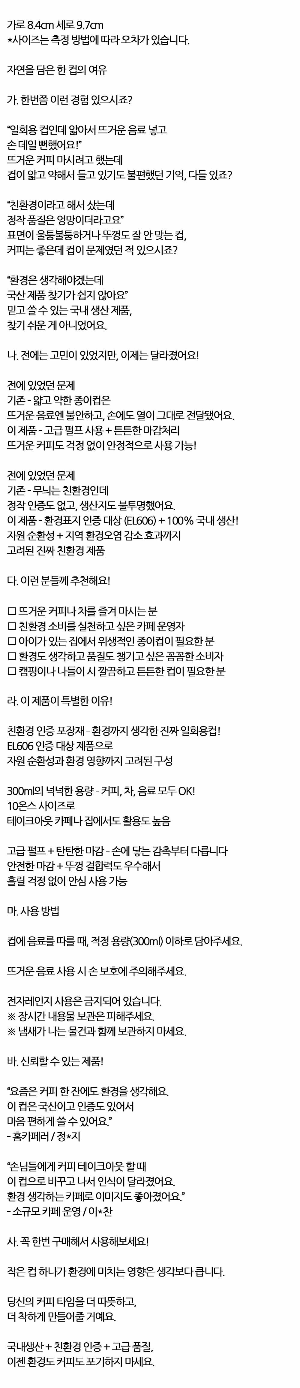 뜨거운 커피도 걱정 없이 일회용 종이컵 300ml 10입