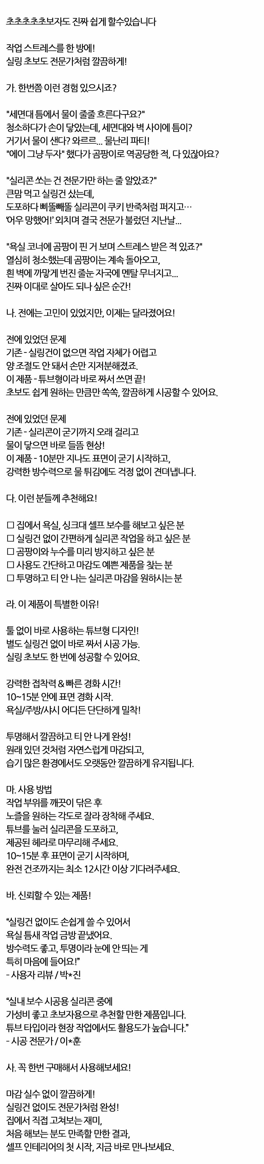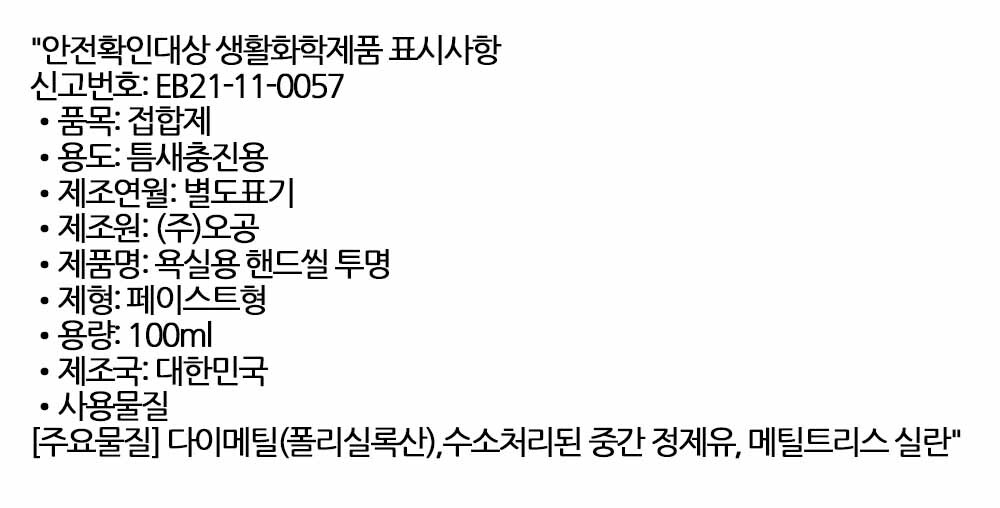 손으로 눌러 짜는 방식 틈새보충용 투명 실리콘 100ml