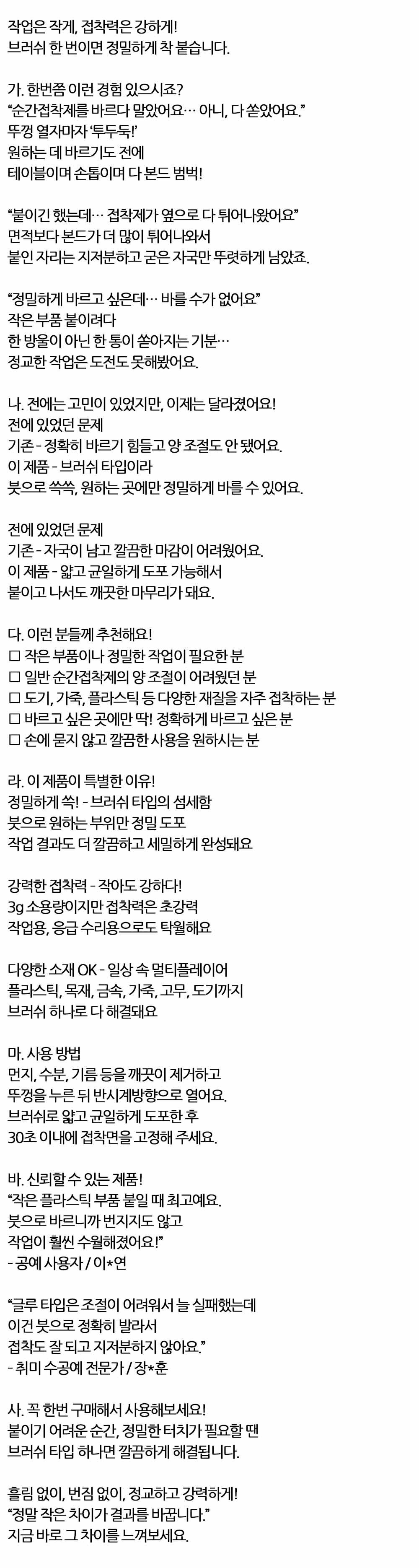 브러쉬 한번이면 정밀하게 착 붙습니다 순간접착제 3g