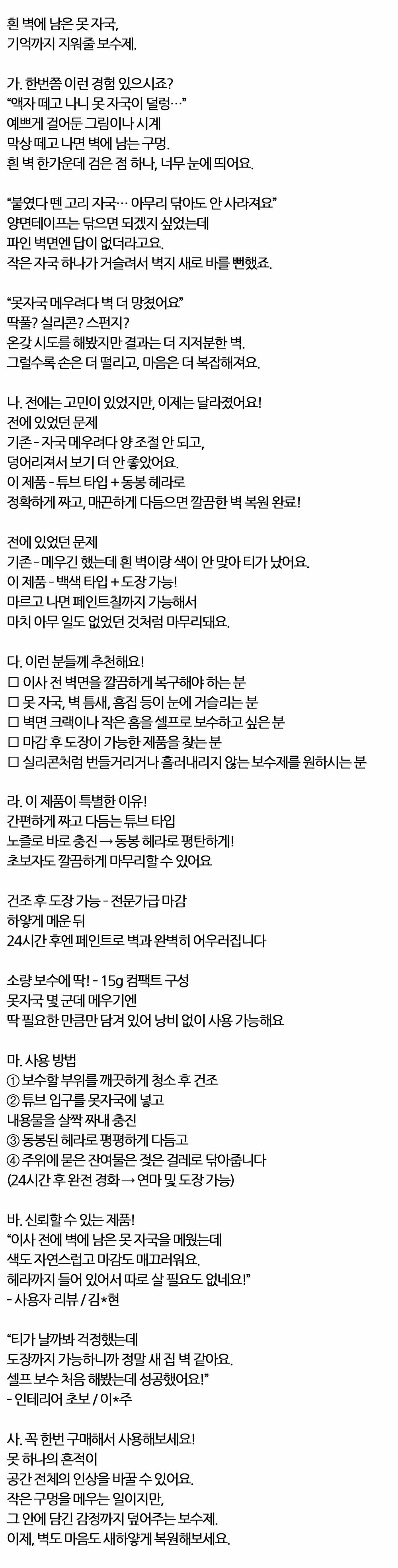 액자 떼고 나니 흰 벽에 남은 못자국 백색 보수제 15g