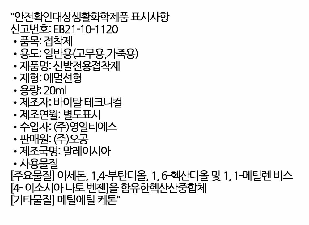 터진 운동화 벌어진 구두 신발전용 투명 접착제 20ml
