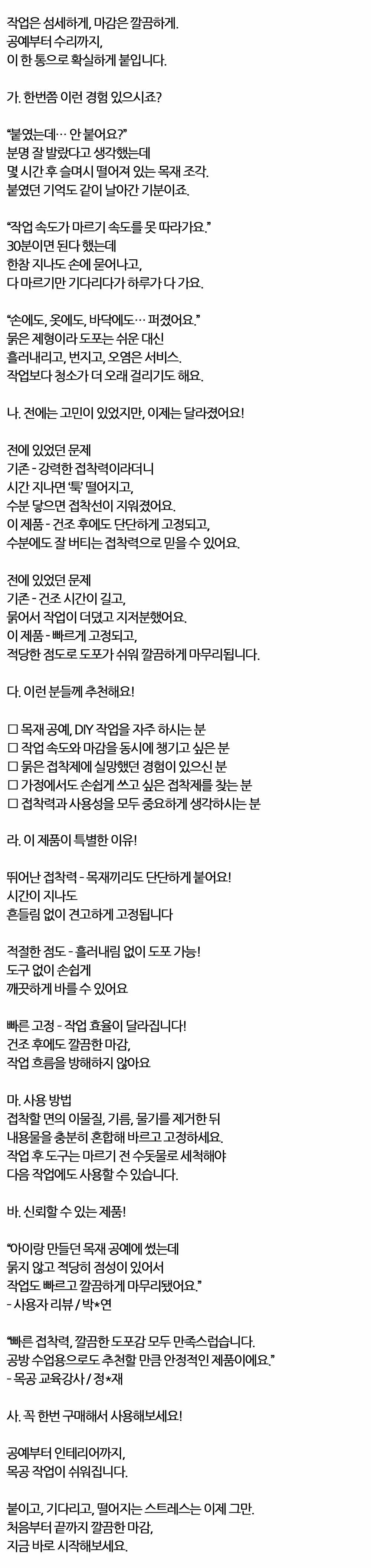 공예 인테리어 목공 작업이 쉬워집니다 접착제 800g