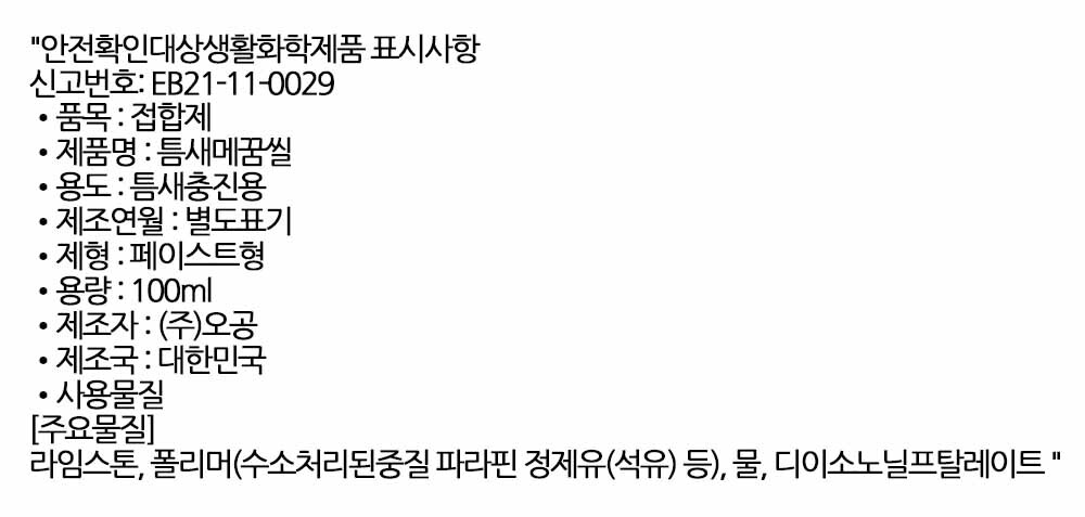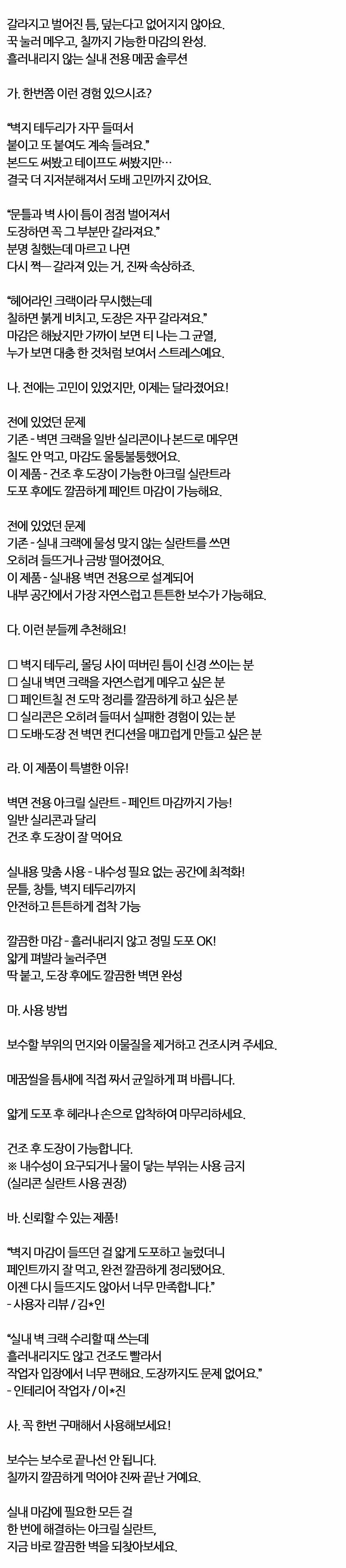 실내 벽면 크랙을 자연스럽게 틈새메꿈이 백색 100ml