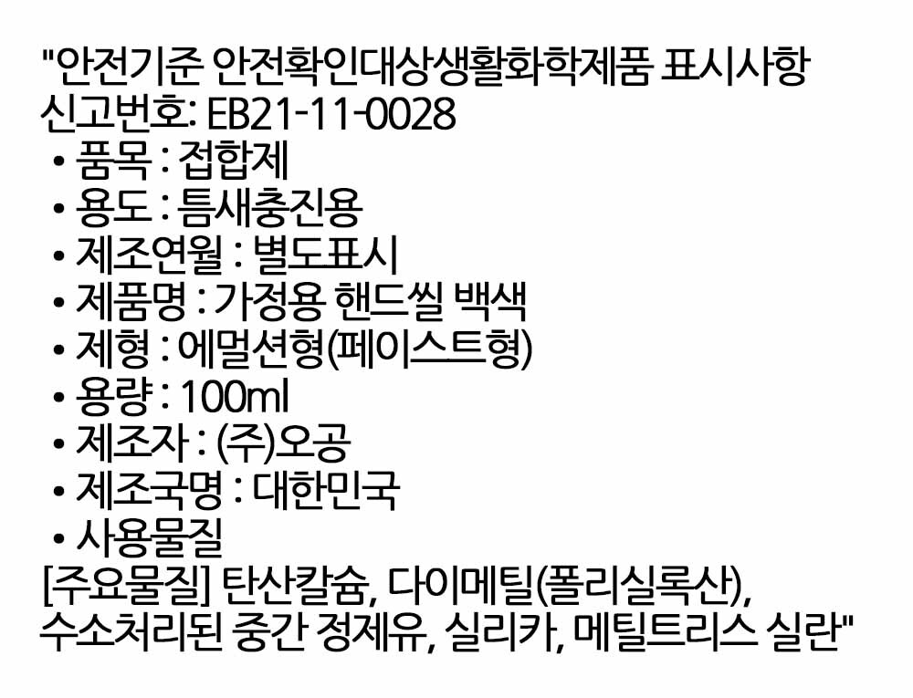 손으로 꾹 눌러 쓰면 끝 튜브타입 실리콘 백색 100ml