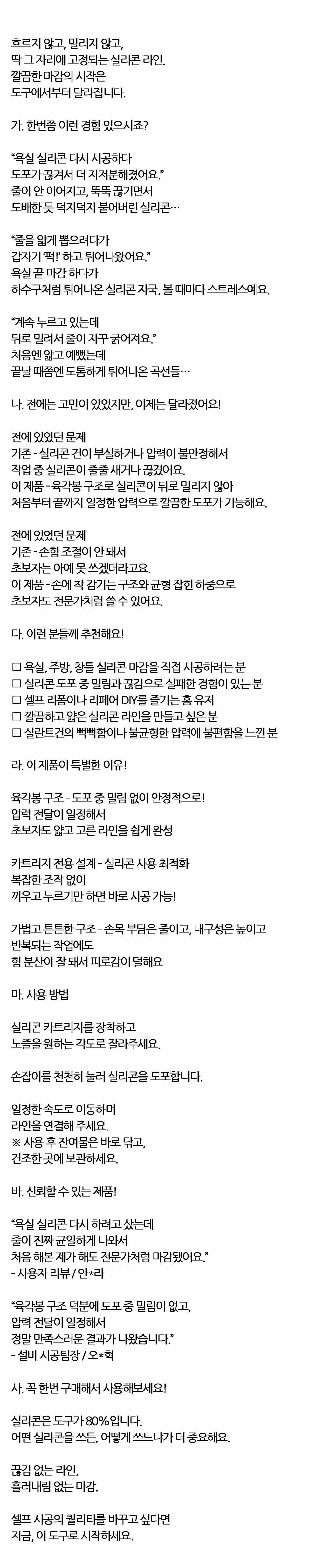 처음부터 끝까지 일정한 압력 깔끔한 도포공 실리콘건