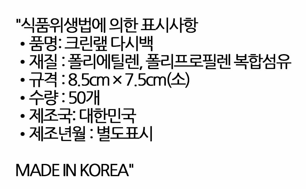 사용후 바로 버려서 정리쉬워요 일회용국물백 소 50입