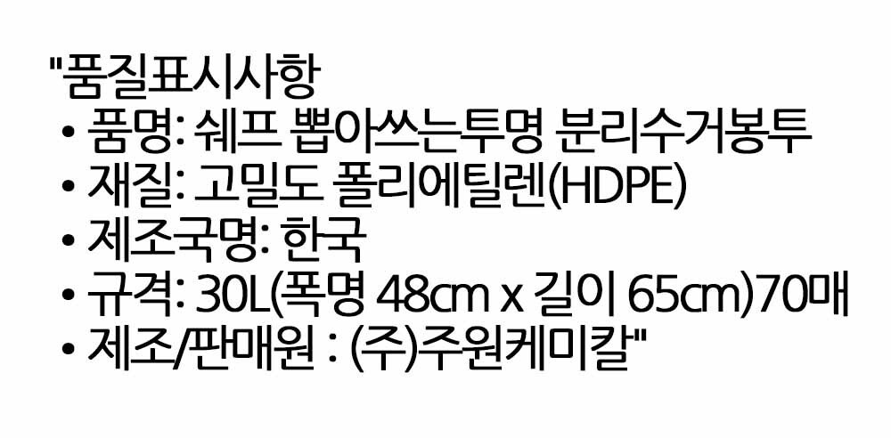 한 장씩 쏙 티슈처럼 꺼내 쓰는 쓰레기봉투 30L 70매