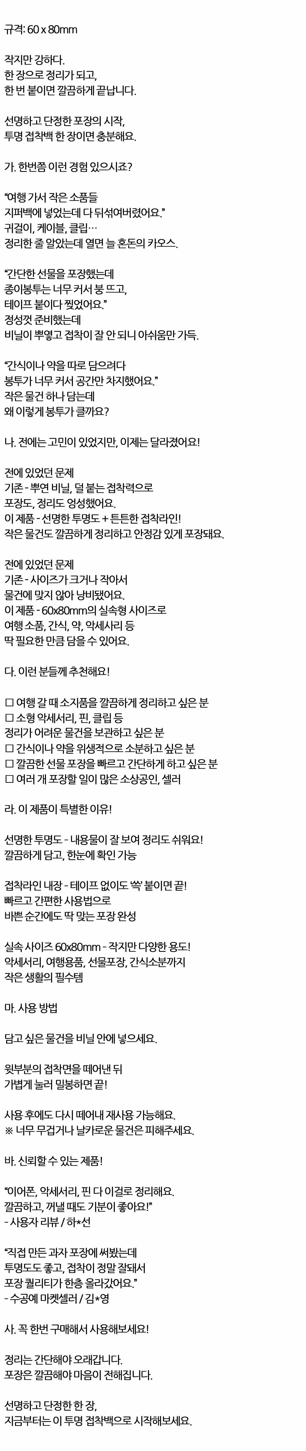 포장은 깔끔해야 마음이 전해집니다 접착백 70매 10개