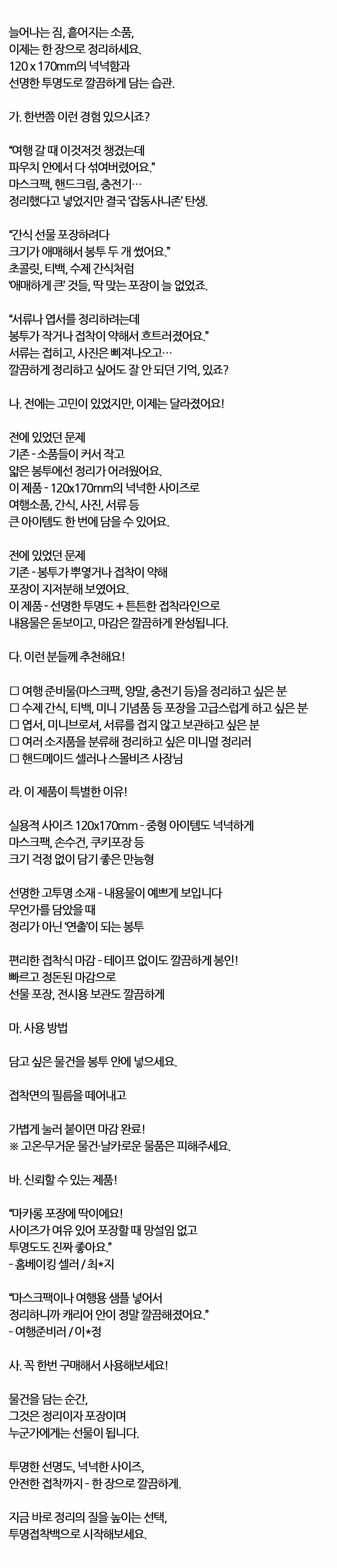 크기 걱정 없이 담기 좋은 만능형 접착봉투 22매 10개