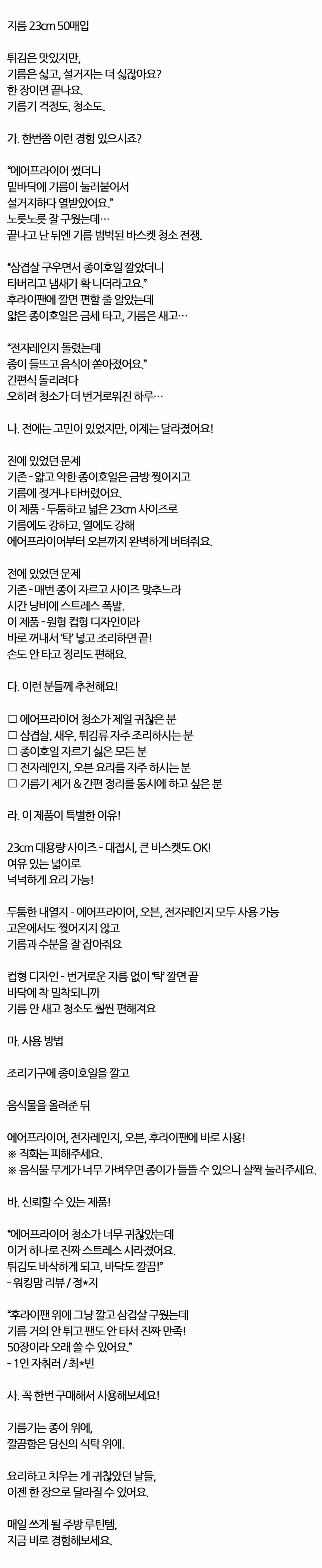 에어프라이어 청소가 너무 귀찮았는데 종이호일 50매