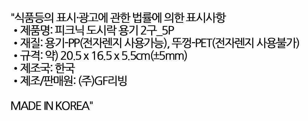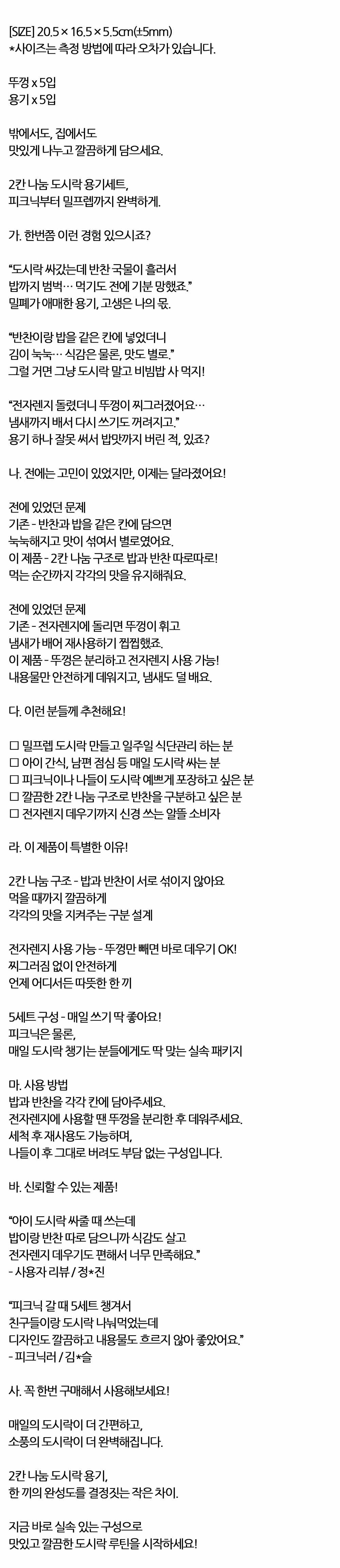맛있게 나누고 깔끔하게 담으세요 도시락 2칸 용기 5P