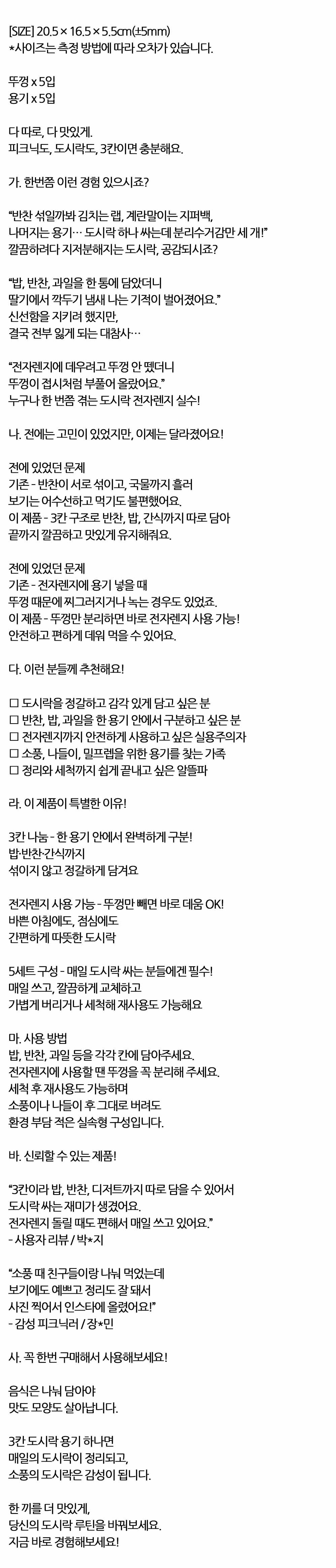 밥 반찬 디저트까지 따로 담는 도시락 3칸 용기 5P