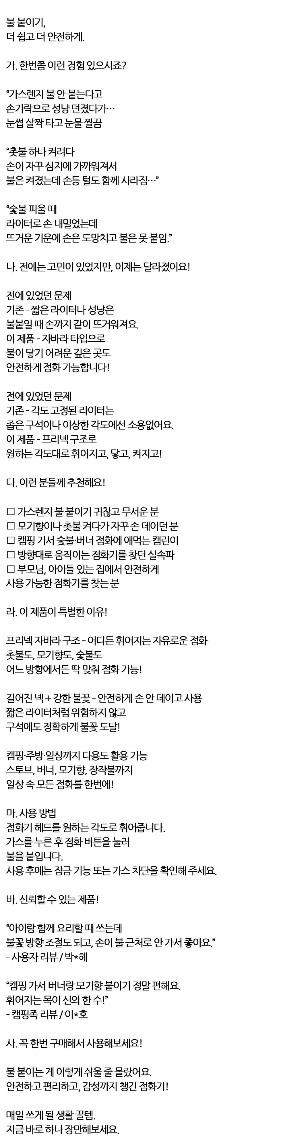 원하는 각도대로 휘어지는 자유로운 점화 가스점화기