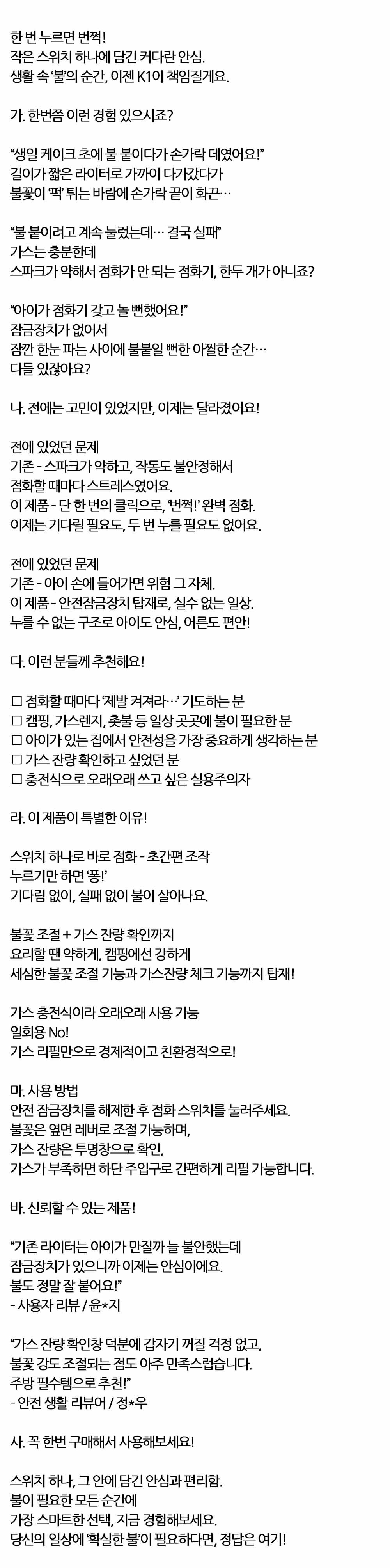 스위치 하나로 바로 점화 초간편 조작 다용도 라이터
