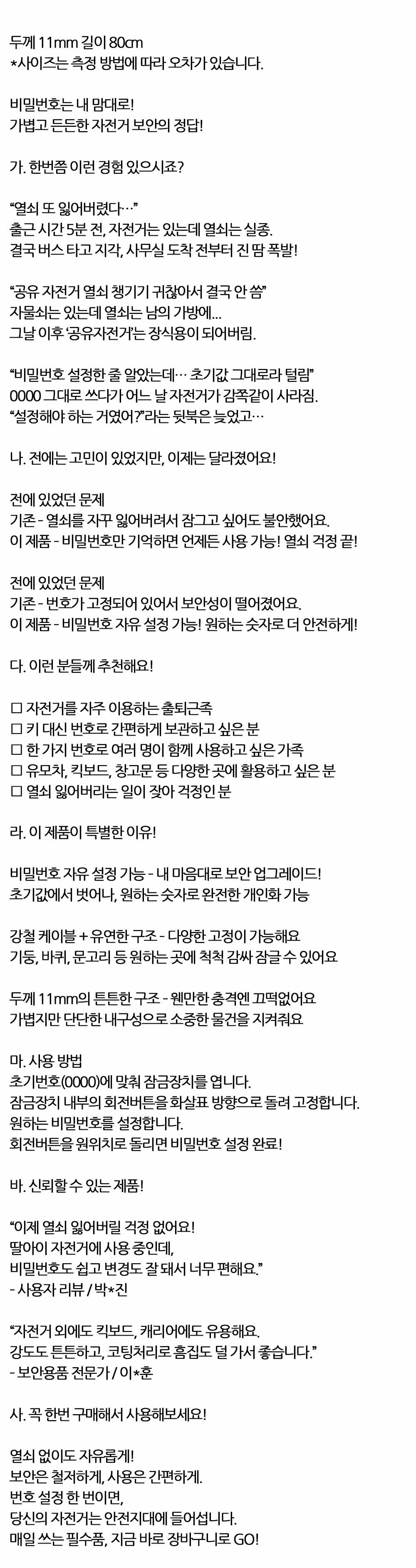 열쇠없이 자유롭게 비밀번호 내 맘대로 자전거 자물쇠