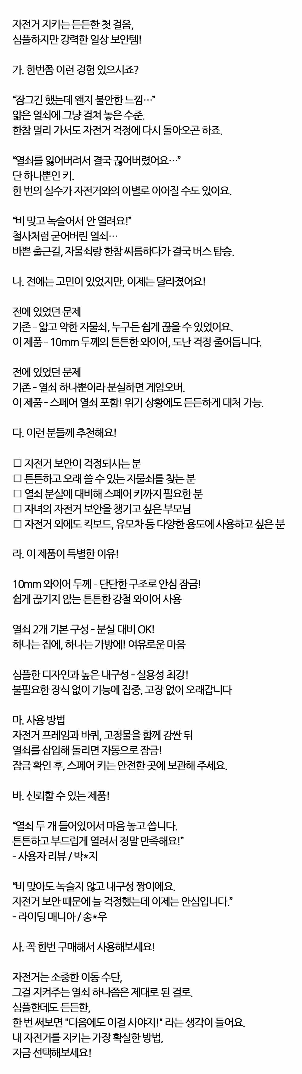 자전거를 지키는 든든한 첫 걸음 자전거 열쇠자물쇠