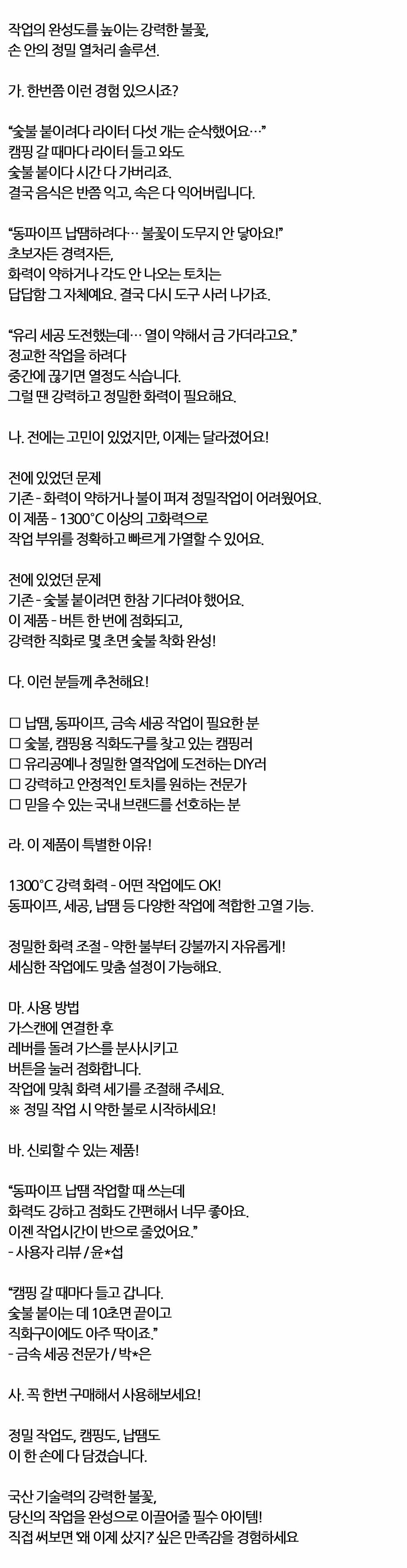 강력한 직화로 숯불 착화 완성 캠핑용 직화 가스토치