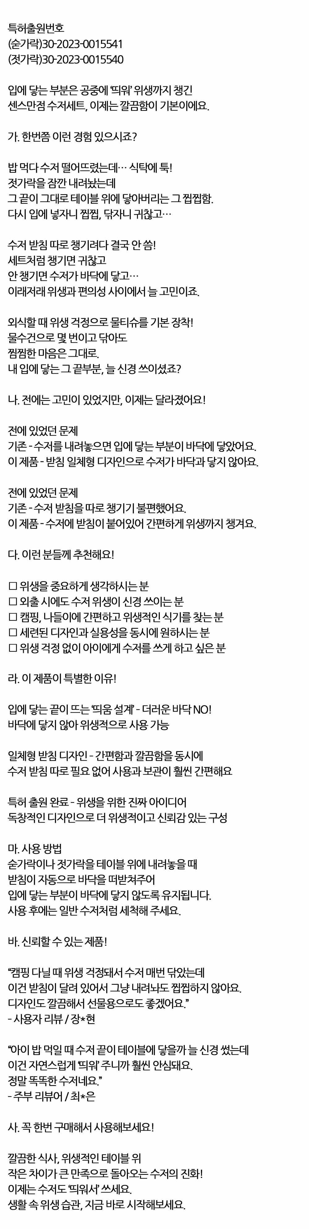 수저에 받침이 붙어있어 간편하게 위생까지 수저세트