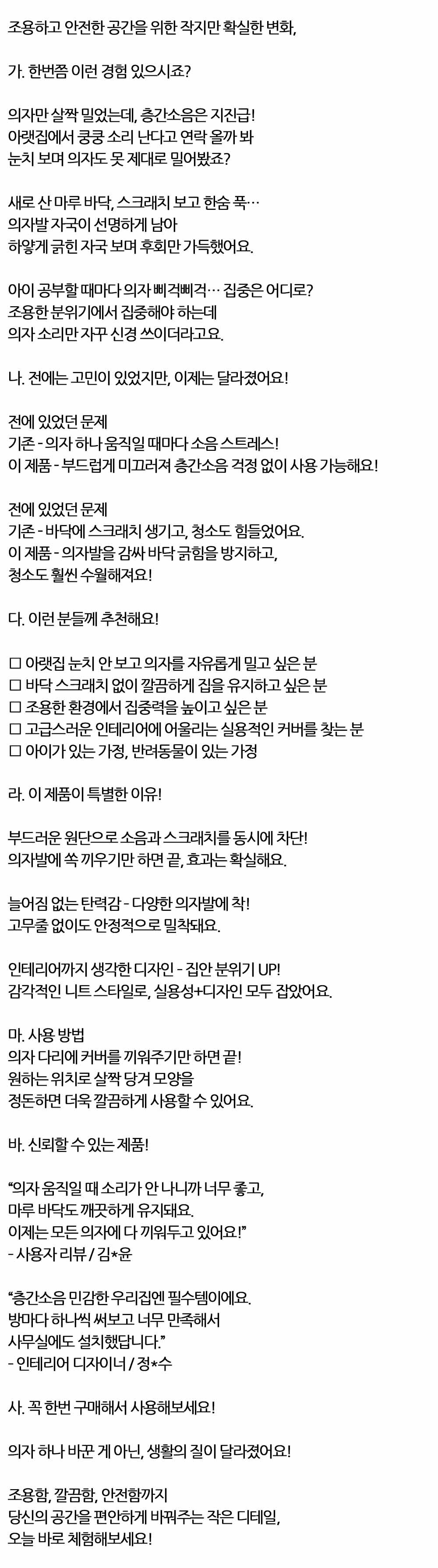 바닥긁힘방지 청소도 훨씬 수월해져요 의자발커버 4입