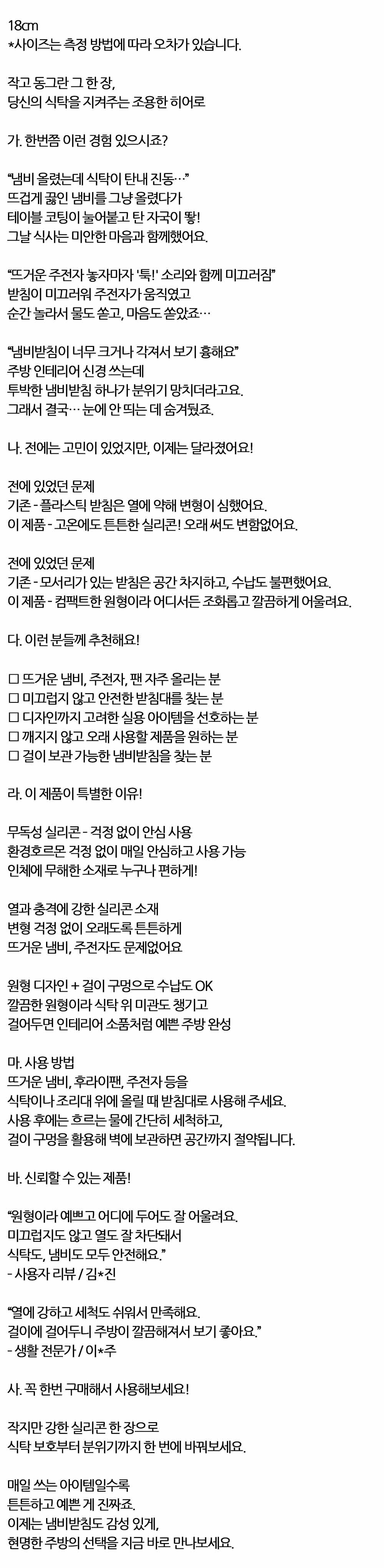고온에 튼튼한 실리콘 오래 써도 변함없어요 냄비받침