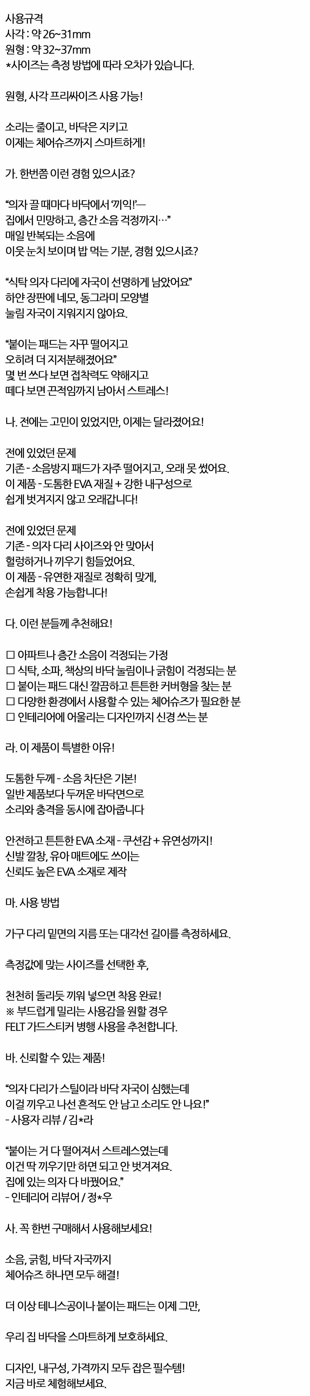 정확히 맞게 손쉽게 착용가능 의자발커버 대 4입 10봉