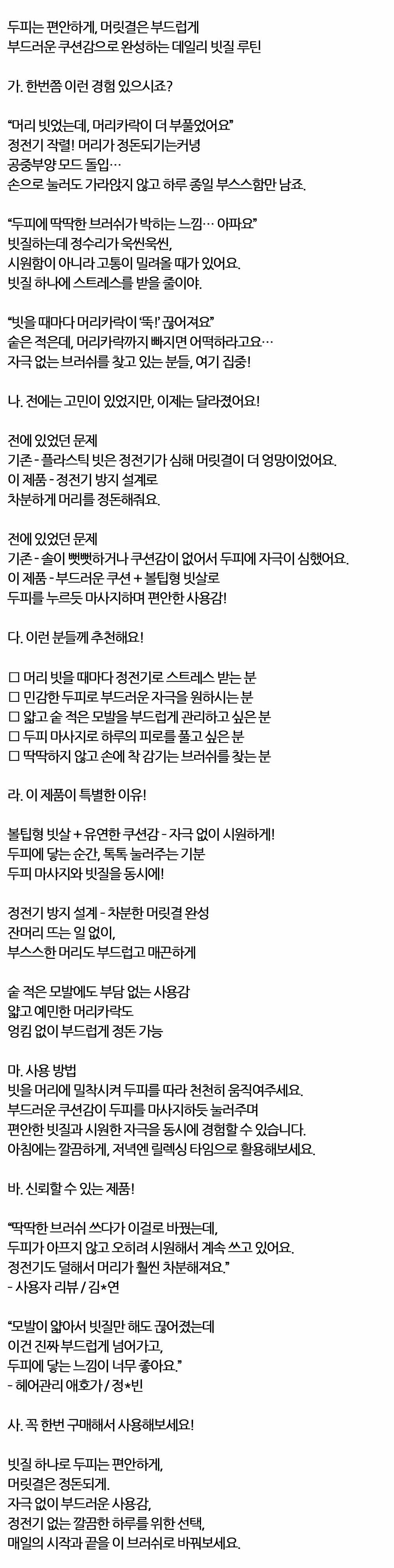 얇고 예민한 머리카락 부드럽게 정돈 원목 타원브러쉬