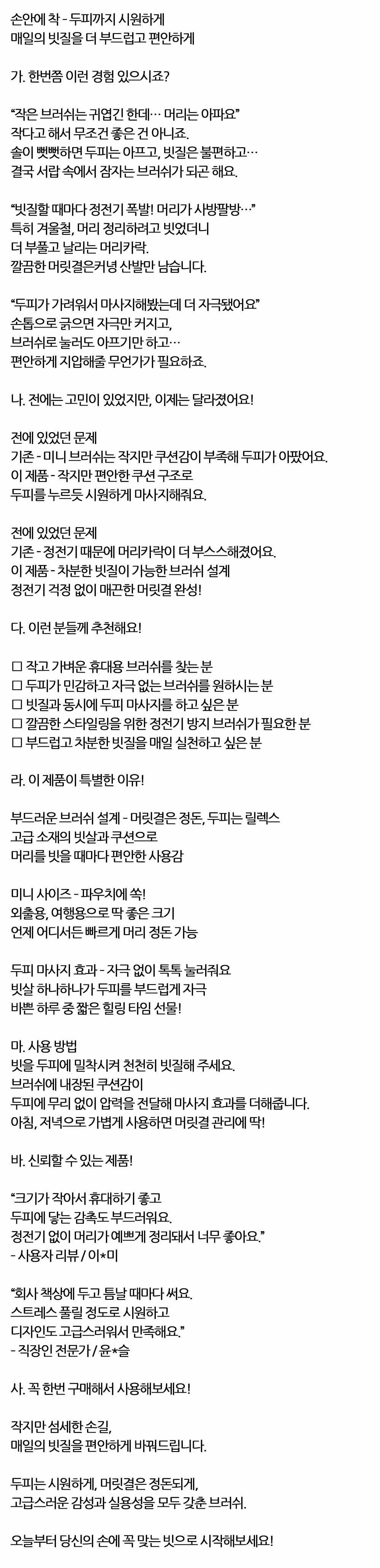 머리를 빗을 때마다 편안한 고급원목 타원브러쉬 소