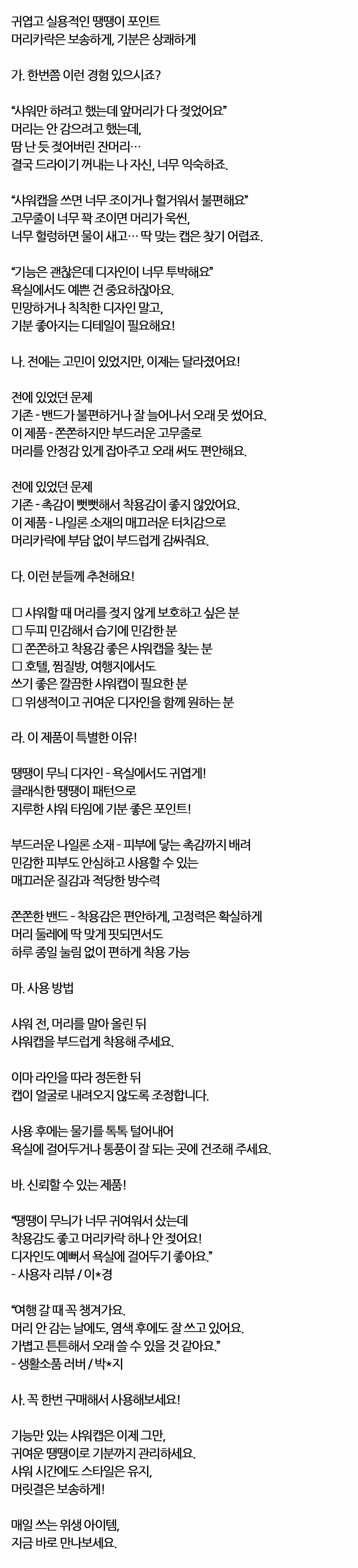 머리를 안정감 있게 잡아주고 편안해요 샤워캡 블루