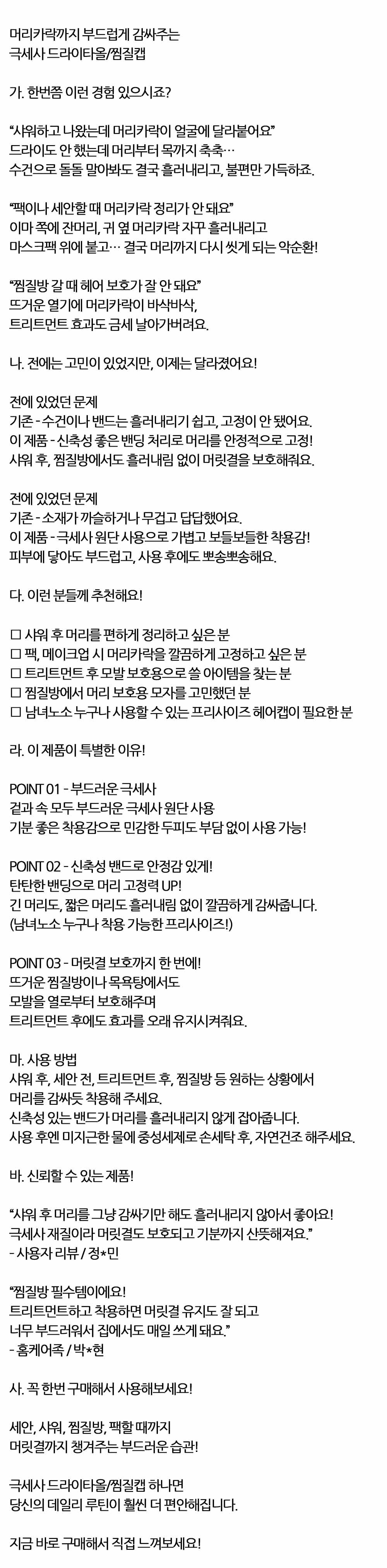 찜질방 갈 때 헤어 보호가 잘 안 돼요 극세사 헤어캡