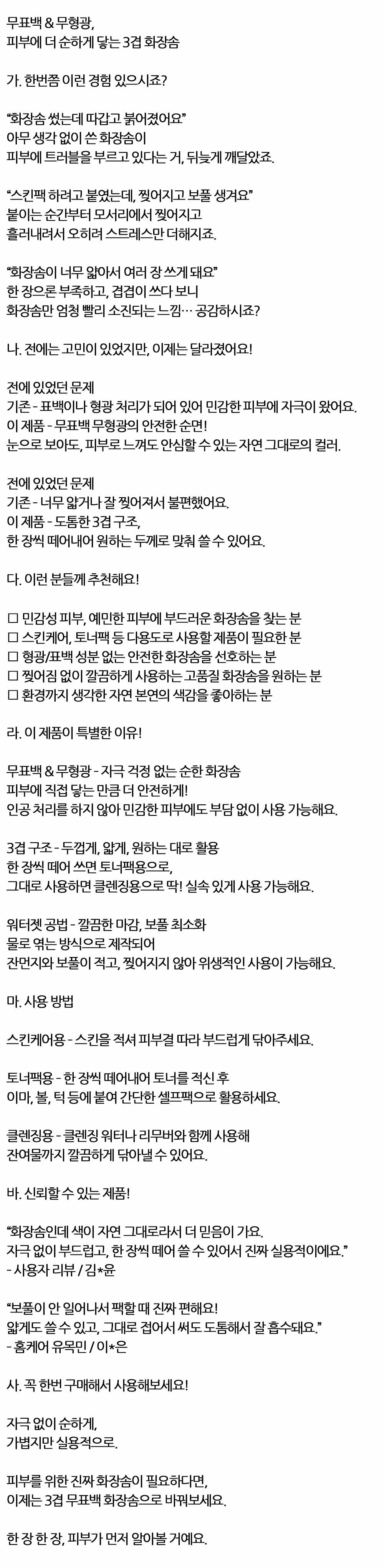민감성피부 예민한 피부에 부드러운 3겹 화장솜 100매